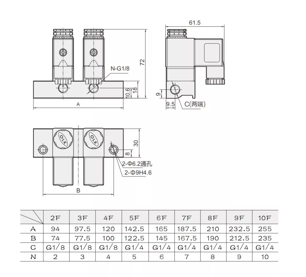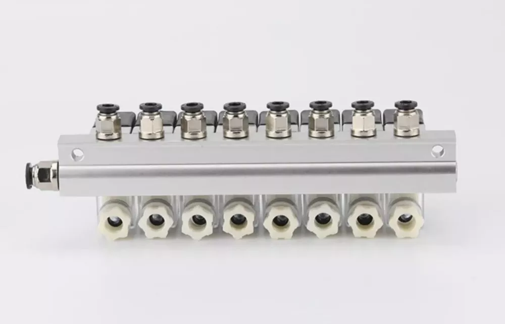 Dvopoložajni, dvosmerni neposredno delujoči normalno zaprti elektromagnetni ventil 2V025 se lahko poveže v osnovo ventila v skladu z zahtevami uporabe, s prilagodljivo razširitvijo od 2 do 12 položajev. Ta razdelilnik elektromagnetnega ventila 2V025 z več postajami je kompakten in lahek, vendar ga ni mogoče razstaviti za individualno uporabo. Telo ventila je izdelano iz visokokakovostne aluminijeve zlitine in uporablja NBR tesnilni material.