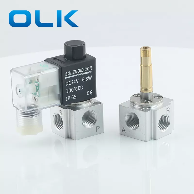 Ta elektromagnetni ventil znamke OLK 3V2 dobro deluje za regulacijo zraka s srednjim pretokom. Preklopi hitro, porabi malo energije in zdrži dolgo. Lahko je normalno zaprt (NC), normalno odprt (NO) ali dvojni solenoid. Pogosto se uporablja v avtomatskih linijah, pakirnih strojih, tiskarskih strojih in prehrambenih strojih. Zaradi svoje majhnosti je popoln za ozke prostore.