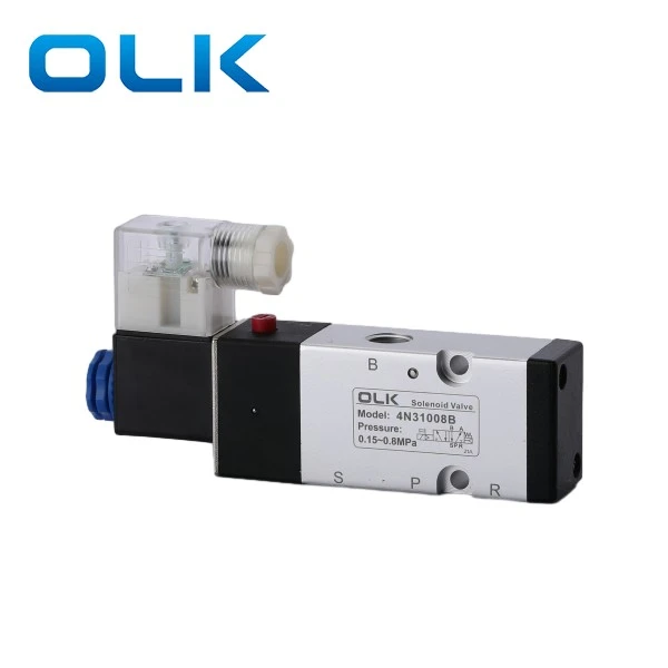 OLK 2Position 5 Way 4N310-08 Plate magnetni ventil nit je velikost vrat G1/4.4N310-08 ventil ima eno obliko zadnjega zraka, kar omogoča fleksibilno namestitev in varčevanje prostora, kar učinkovito poveča hitrost odziva in stabilnost sistema.