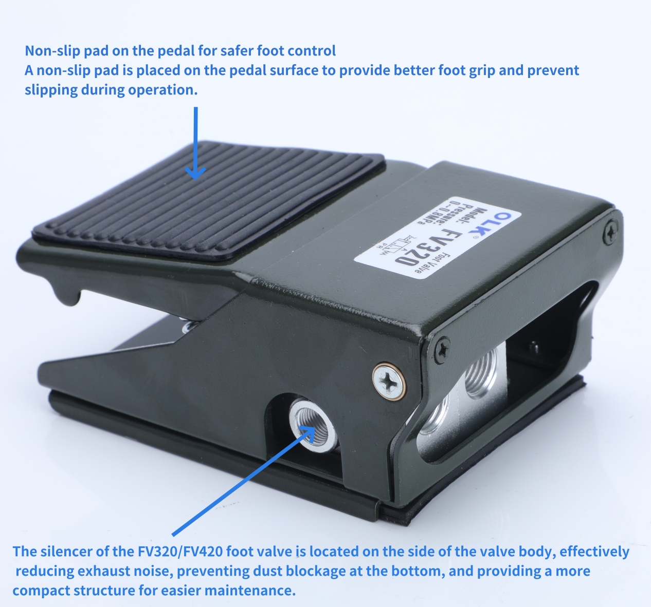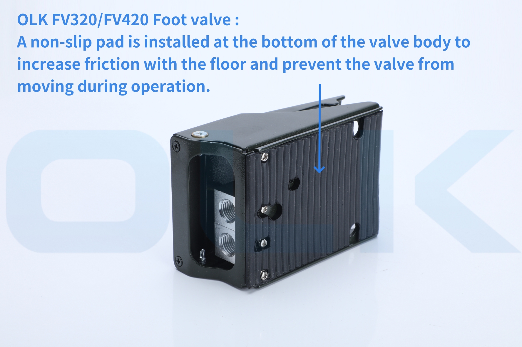Na površini pedala in podstavku ventila je nameščena nedrseča blazinica, ki zagotavlja boljši oprijem stopala in prepreči zdrs med delovanjem.