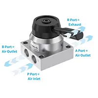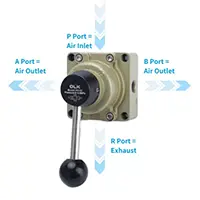 Ouleikai (OLK) HV200A/B Dvosmerni ročno upravljani ventili ročno delujejo, z vrtenjem ročaja ventila. So enostavni za upravljanje in intuitivne, ne zahtevajo dodatne oskrbe z energijo. HV200B 2/4 vhodni ventil ima vgrajen dušilec zvoka na spodnjem izpušnem pristanišču.