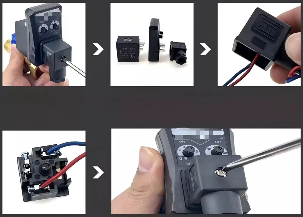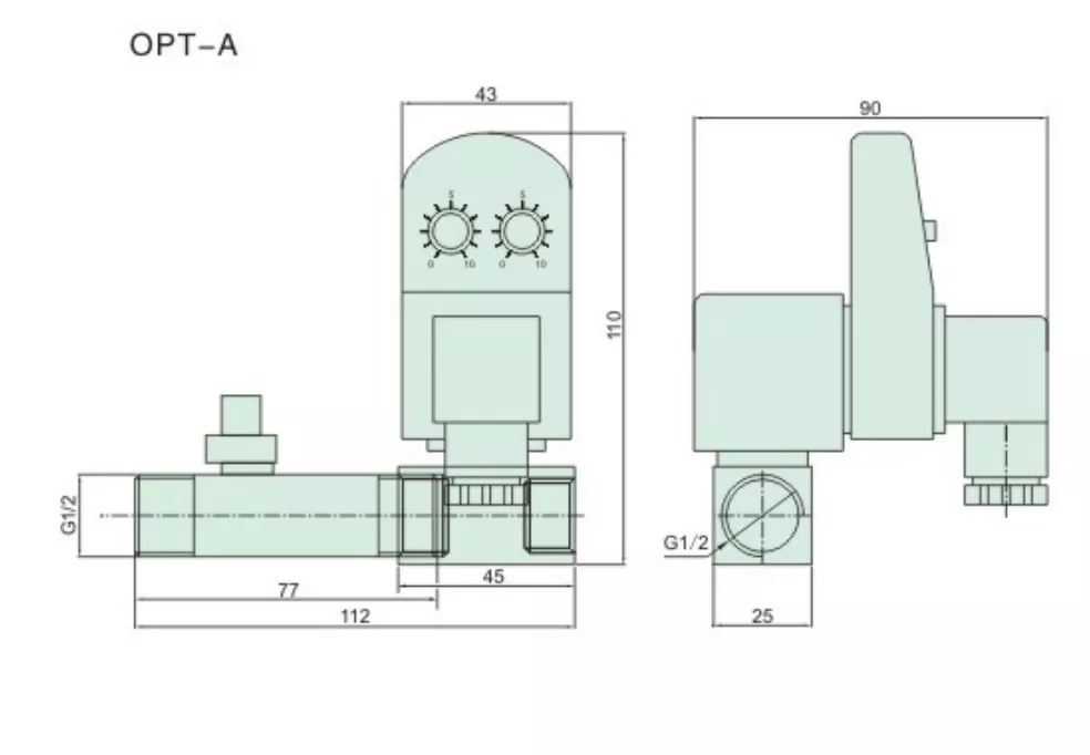 OLK OPT-A Electronic Timer Auto Drain split struktura je primerna za ozke namestitvene prostore in nudi prilagodljivo smer namestitve. Dvignjen del z navojem na sredini je priključna odprtina za ohišje ventila. Daljši del ohišja ventila je vstopna odprtina, krajša gladka stran pa je odvodna odprtina. Ventil podpira električni nadzor + ročno preglasitev, kar zagotavlja dvojno varnostno zaščito. Zunanje ročno zapiralno stikalo preprečuje kondenzat praznjenje med izpadom električne energije.