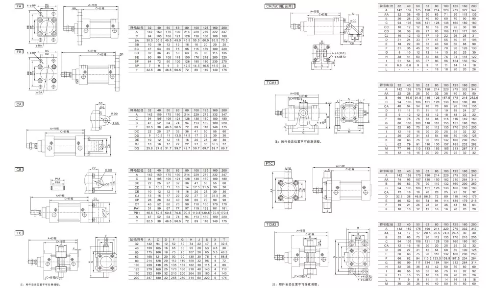 Pnevmatski cilinder SU in zračni cilinder SI ni mogoče zamenjati, dodatki (CA /pogosta vprašanja:,FA-prirobnice,TC-M, sklepne glave) niso združljivi